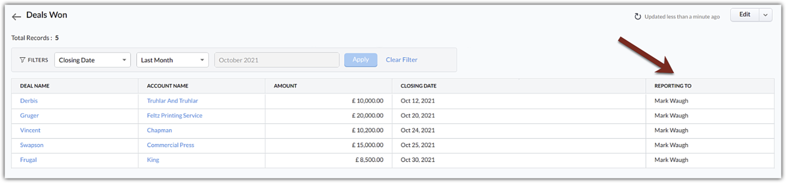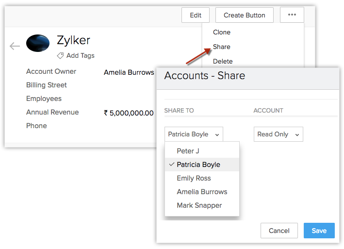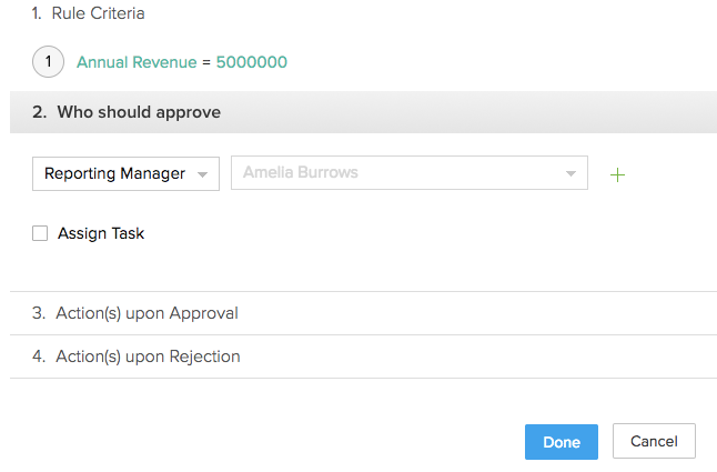 În afaceri, există nenumărate ocazii în care aprobarea unui superior este necesară înainte de finalizarea unei activități. Zoho CRM ți-a permis să redirecționezi astfel de activități către superiorul proprietarului înregistrării. În ierarhia de raportare, poți alege managerul de raportare al proprietarului înregistrării pentru a efectua aceste acțiuni. Mai jos sunt câteva situații în care ierarhia de raportare aduce schimbări semnificative: