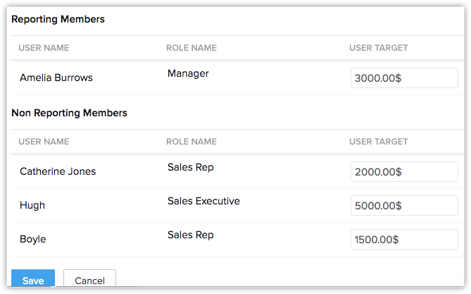 - Setează țintele pentru membrii cu raportare și fără raportare.