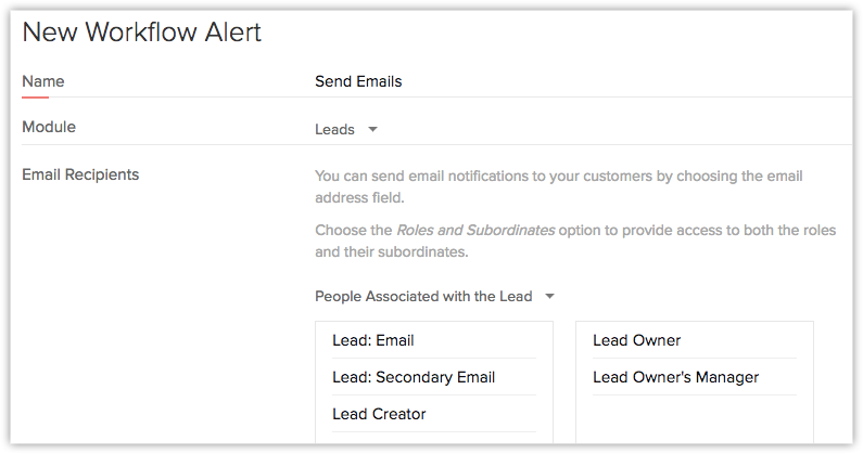- În pagina Send Alert, selectează Record Owner's Manager.