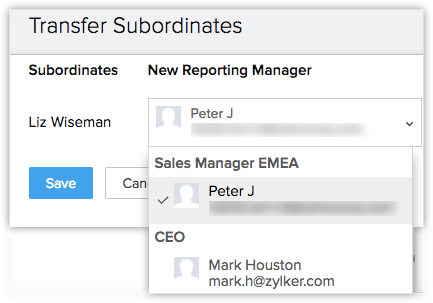 O persoană a fost manager de raportare pentru câțiva utilizatori, dar acum a fost retrogradată la un rol subordonat. De exemplu, Amelia Burrows a fost Sales Manager (EMEA) și executivii de vânzări Mark Snap și Liz Wiseman raportau către ea. Dacă Amelia nu a performat bine și a fost retrogradată, atunci Mark și Liz trebuie să li se atribuie un nou manager de raportare.