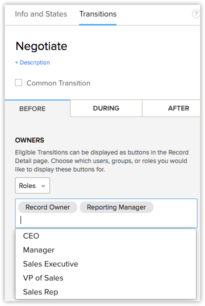- În Transitions, selectează Roles sub Owners.