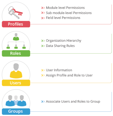 Zoho CRM oferă un set de funcționalități de securitate care definesc permisiunile asupra datelor, precum și asupra funcționalităților din Zoho CRM. Administratorii pot controla aceste opțiuni de securitate din contul CRM al organizației.