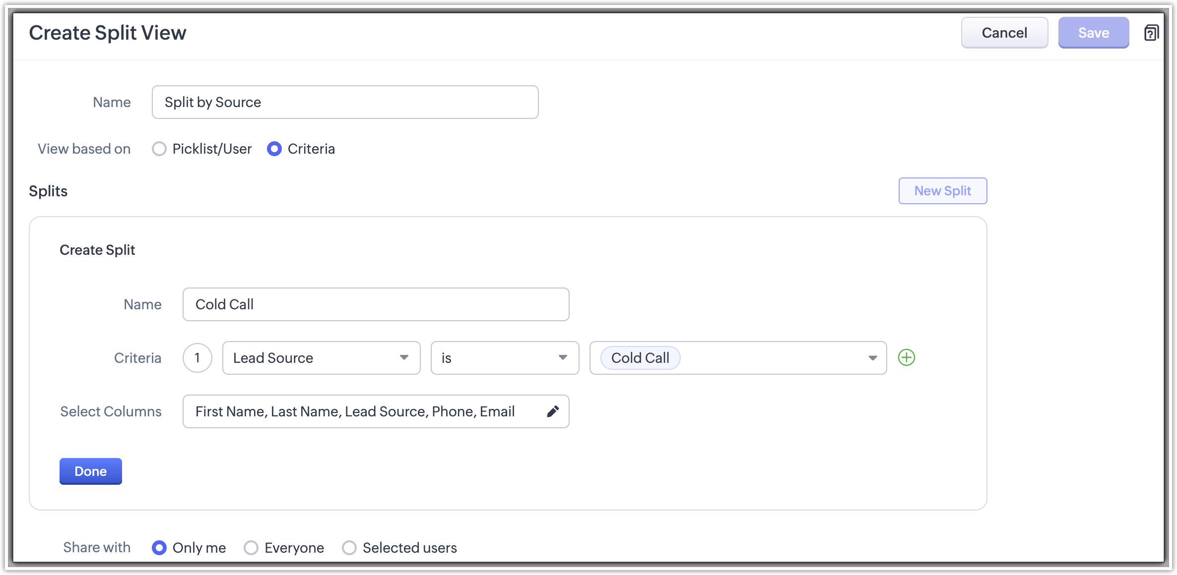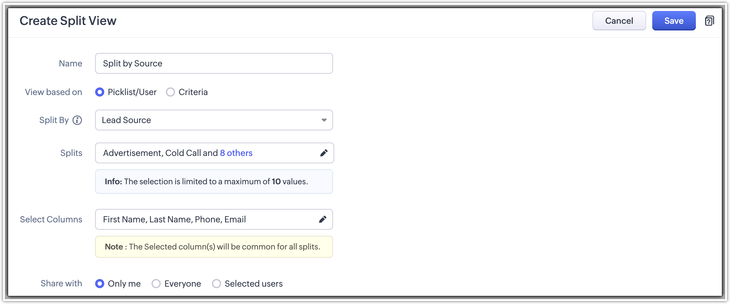 Numărul de Split View-uri pe care le poți crea depinde de ediția ta Zoho CRM, după cum se arată în tabelul de mai jos: