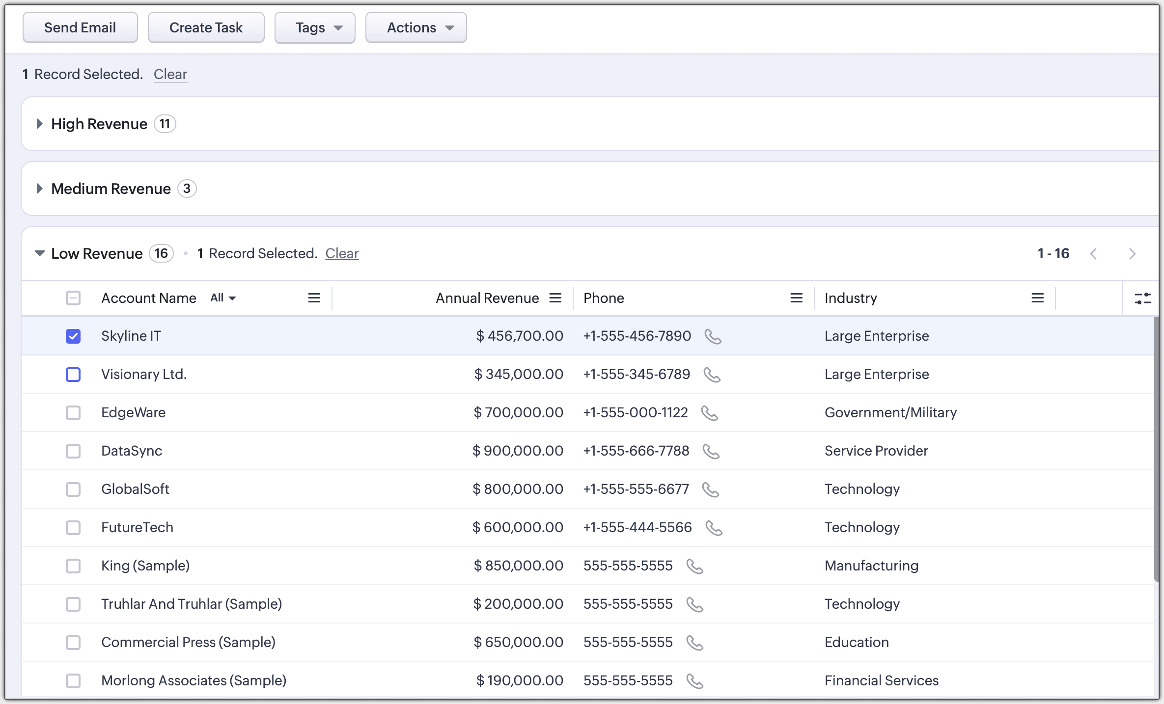 Da, poți efectua acțiuni rapide direct din Split View. Această funcție îți permite să gestionezi sarcinile eficient fără a schimba ecranele. De exemplu, dintr-un panou de secțiune, poți iniția rapid urmăriri prin e-mail, atribui înregistrări sau actualiza informații, permițând luarea mai rapidă a deciziilor și îmbunătățind productivitatea generală a fluxului de lucru.