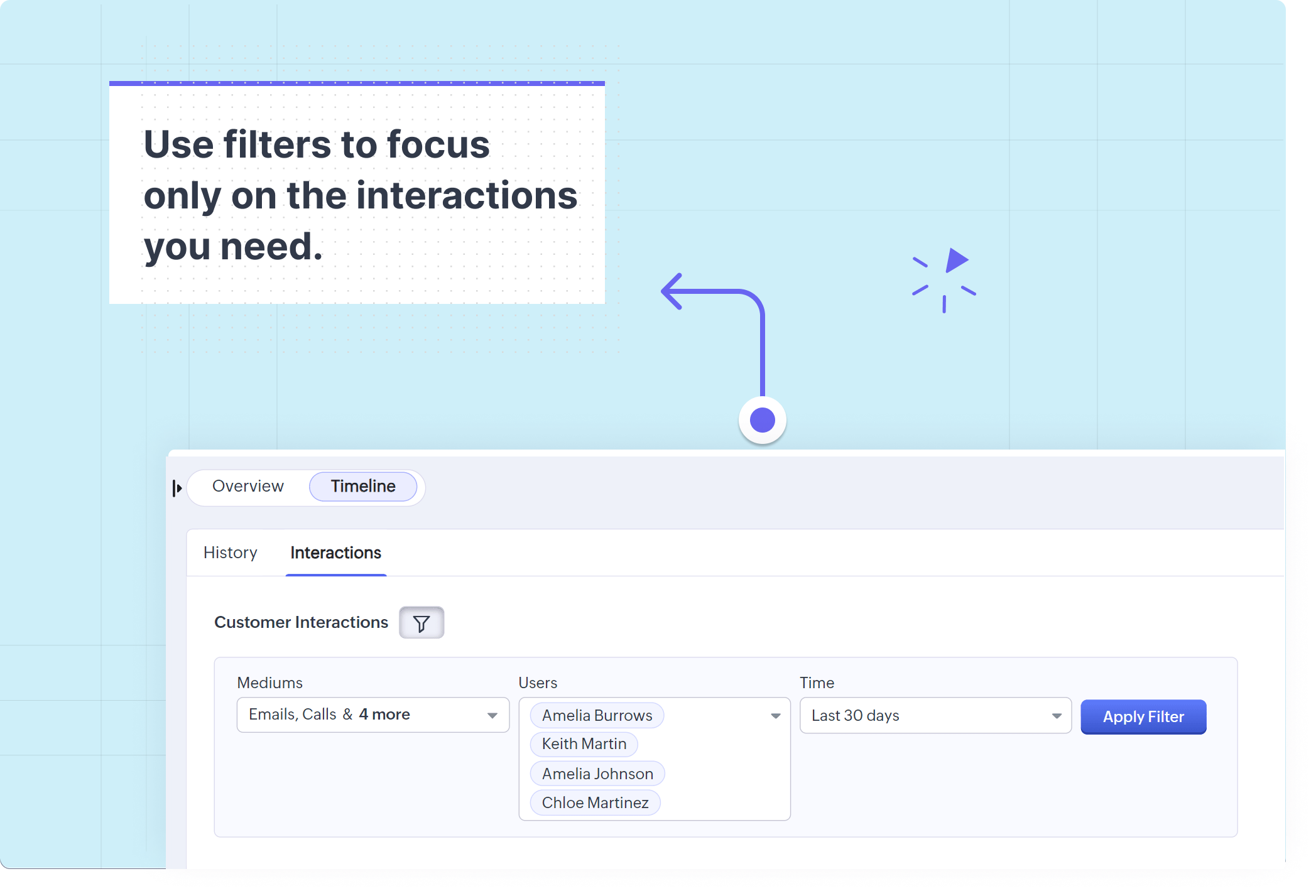 Folosind tab-ul Interactions, echipele tale care interacționează cu clienții pot: