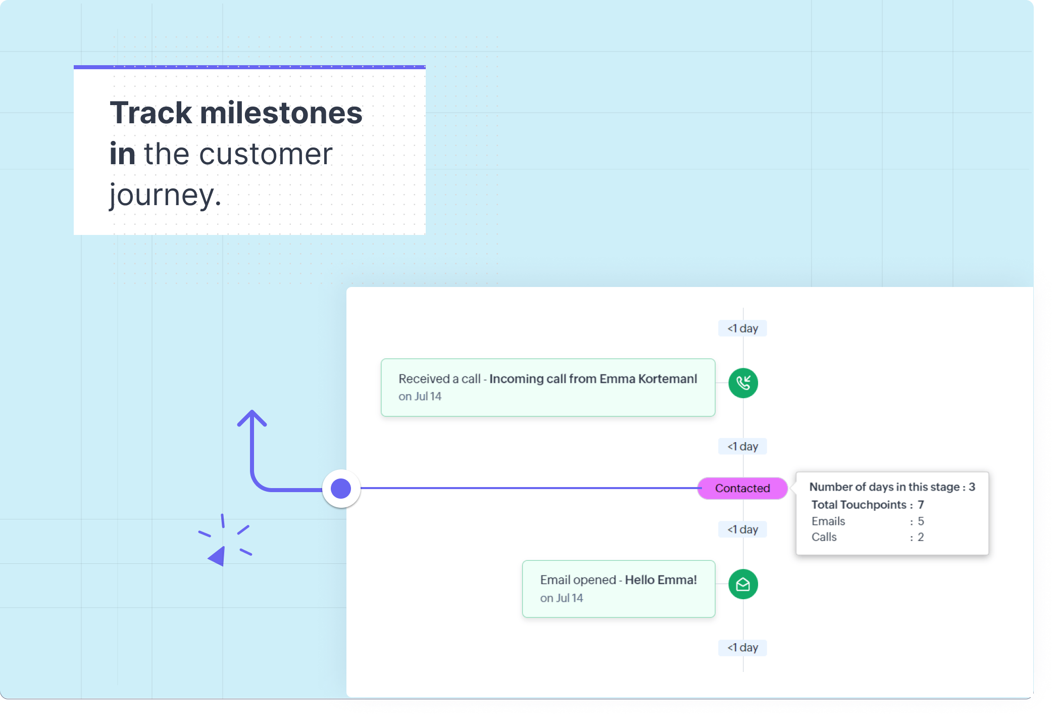 - Obține o imagine completă a parcursului curent al unui client, din momentul în care a fost adăugat ca lead sau contact în CRM.