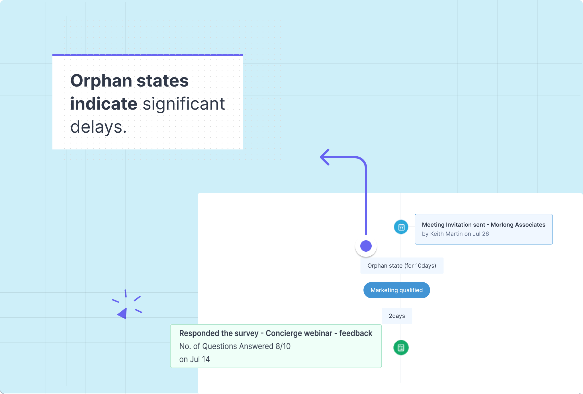 O stare orfană va indica un interval mai mare decât media dintre semnale și follow-up-uri. Este calculată pe baza intervalului mediu de timp dintre punctele de contact pentru înregistrările din acel modul. Va fi recalculată săptămânal.