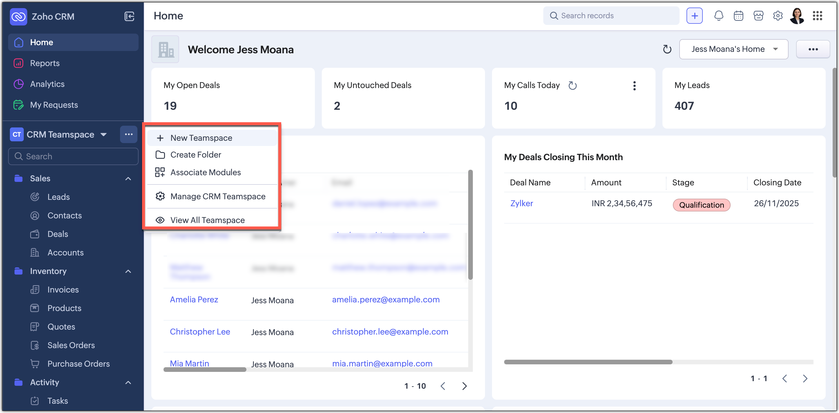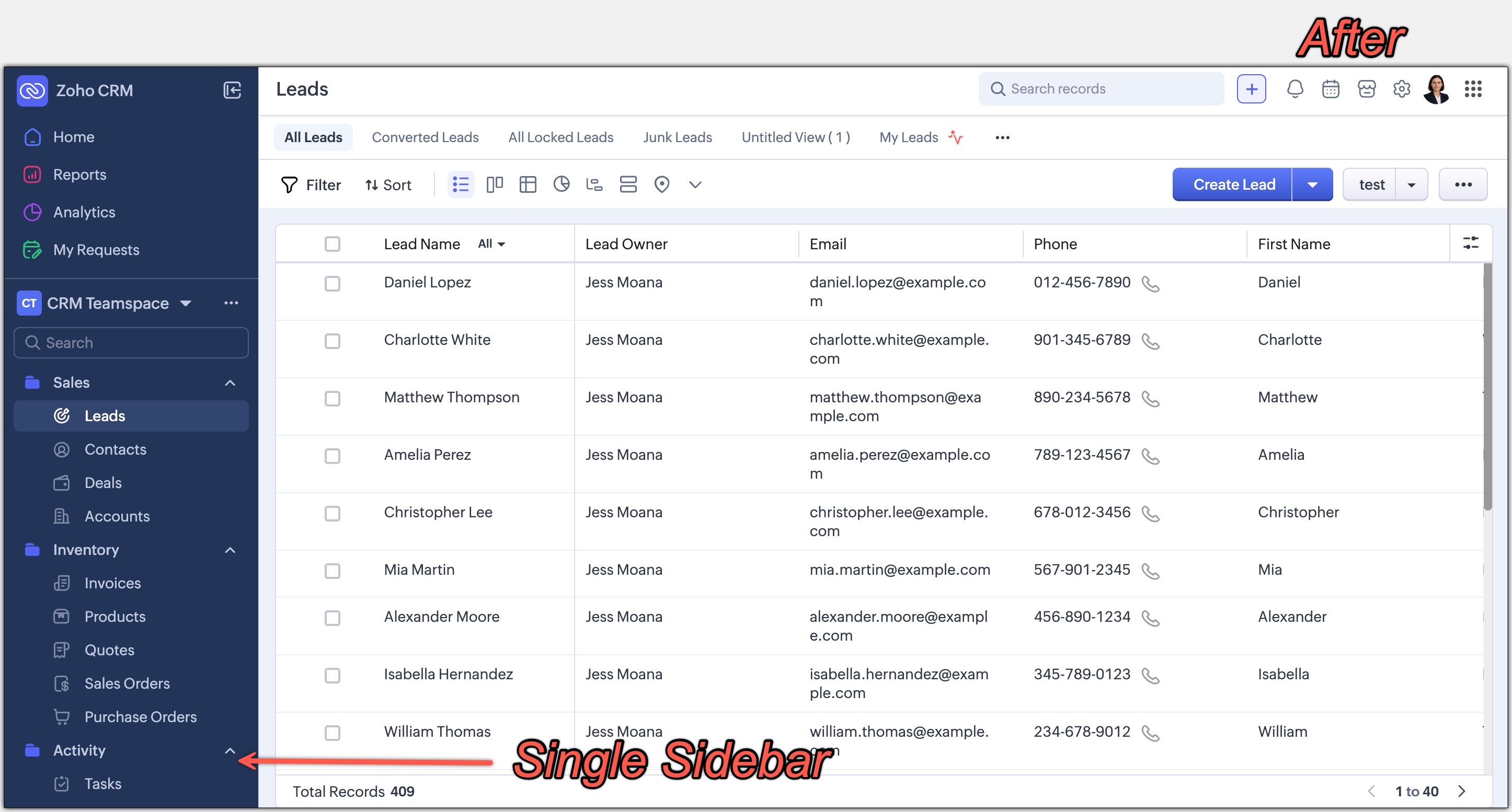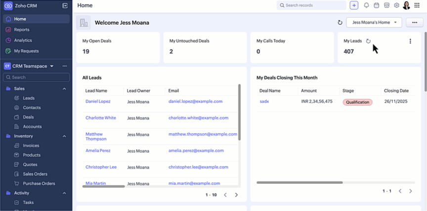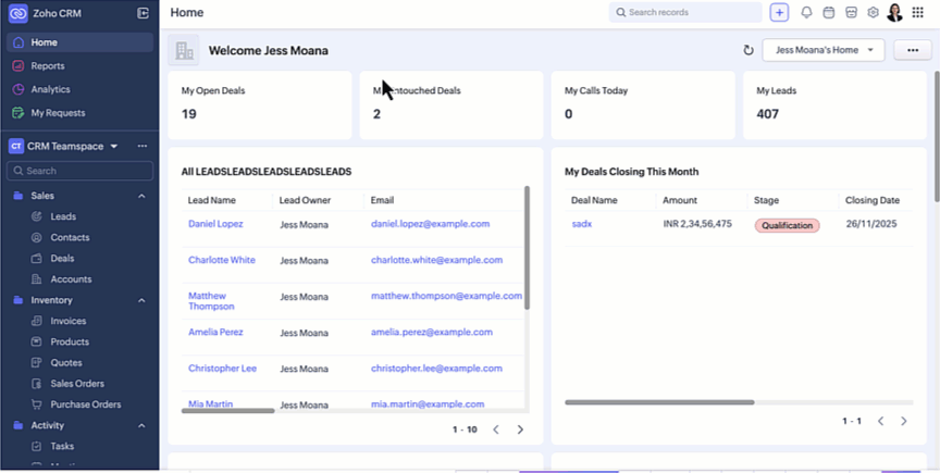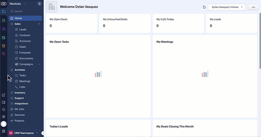 Disponibilitate : Această interfață îmbunătățită este suportată doar pentru conturile CRM independente în acest moment. Nu este încă suportată pentru CRMPlus sau Zoho One.