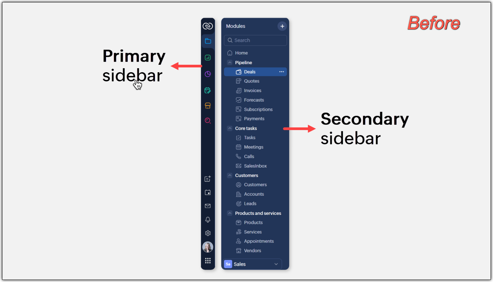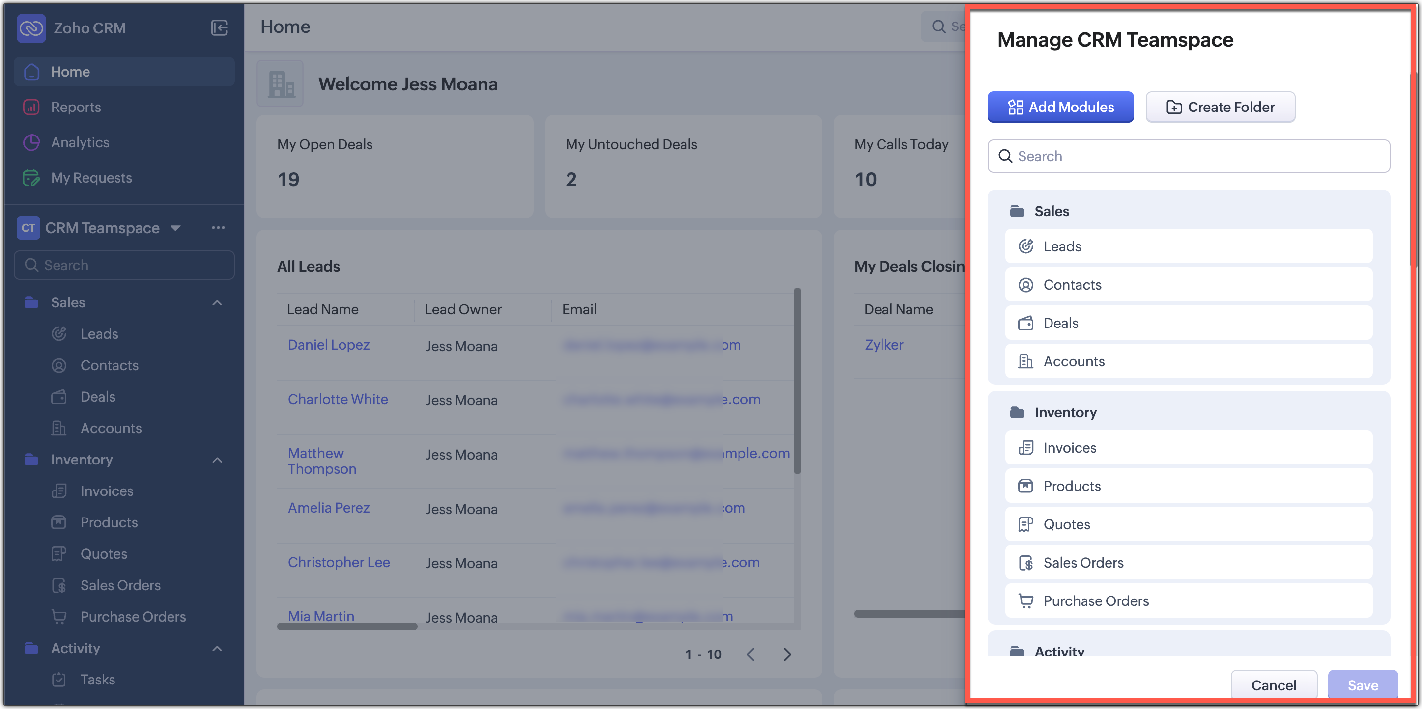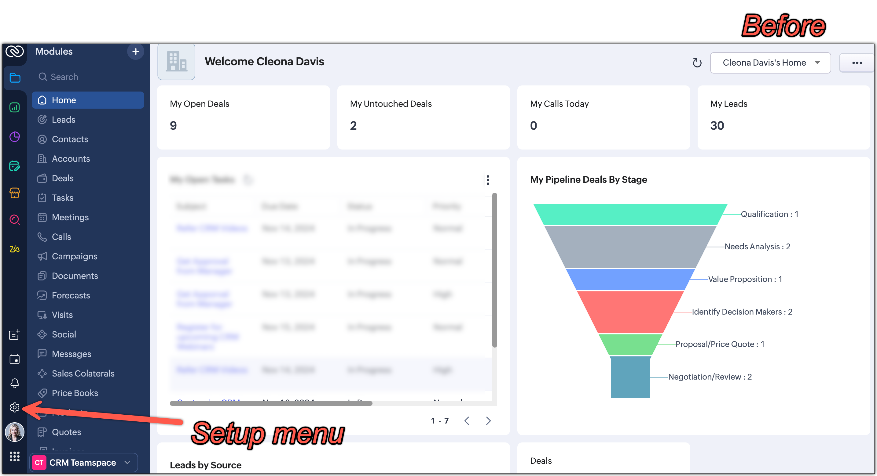 Disponibilitate : Această interfață îmbunătățită este suportată doar pentru conturile CRM independente în acest moment. Nu este încă suportată pentru CRMPlus sau Zoho One.