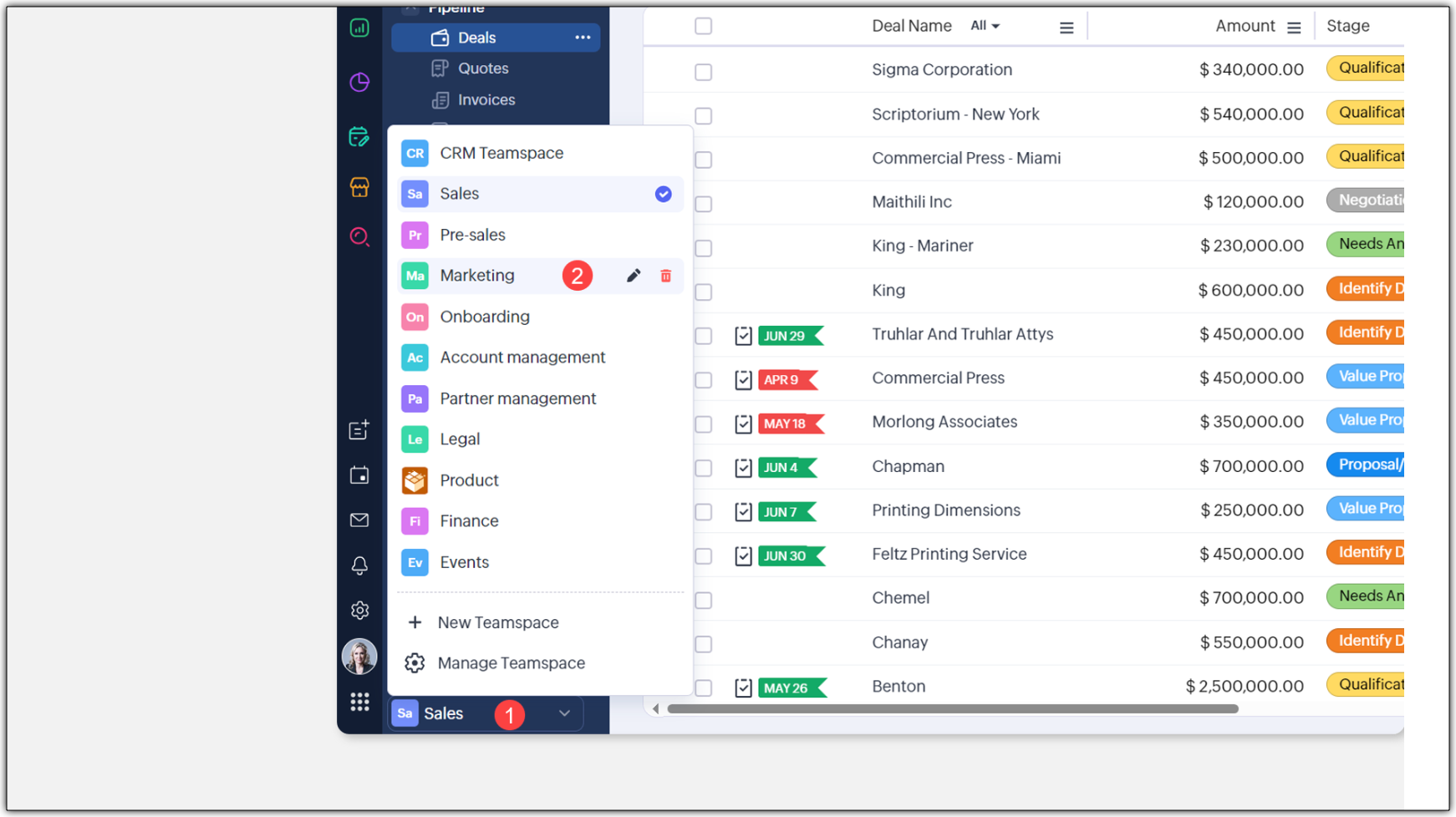 - Gestionarea teamspace-urilor CRM se va deschide acum într-un pop-up în partea dreaptă a ecranului.