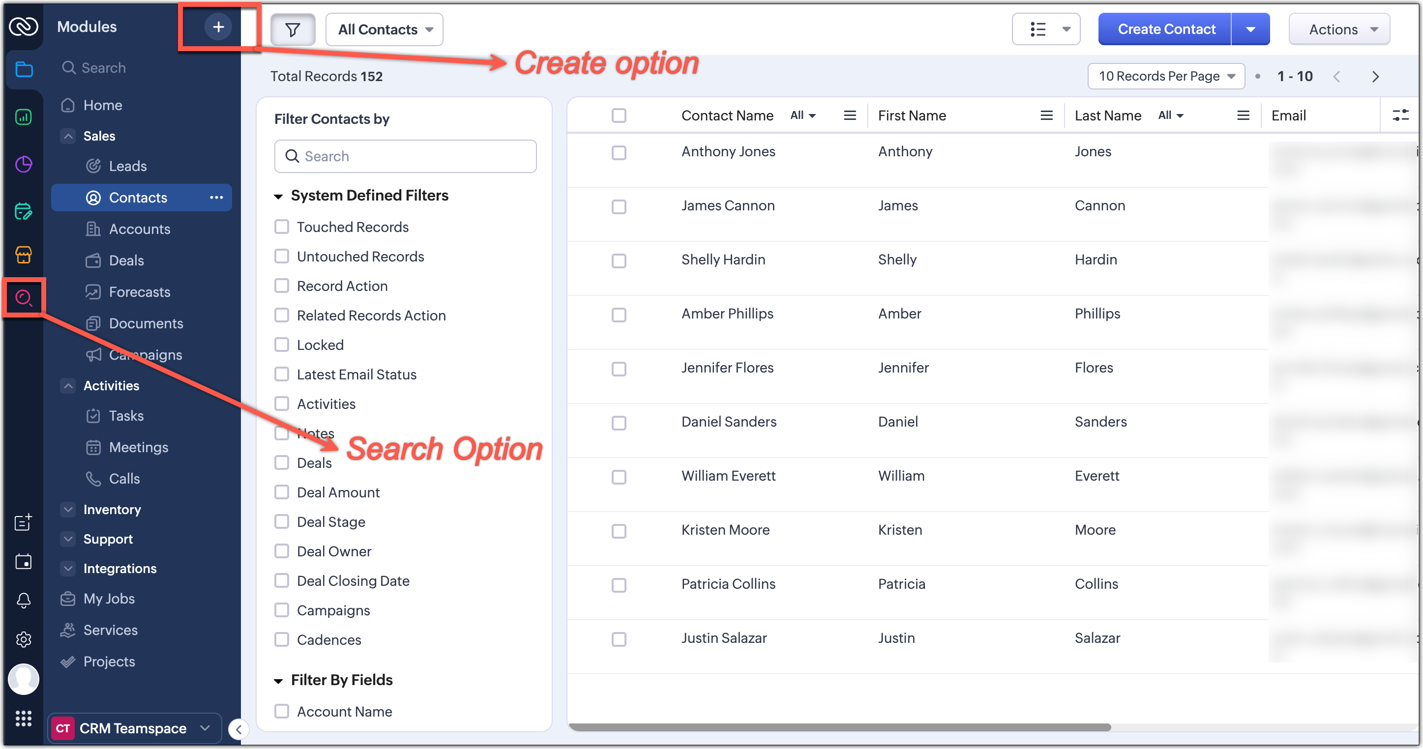 - Găsi rapid înregistrări, module sau informații în tot CRM-ul tău folosind căutarea globală.