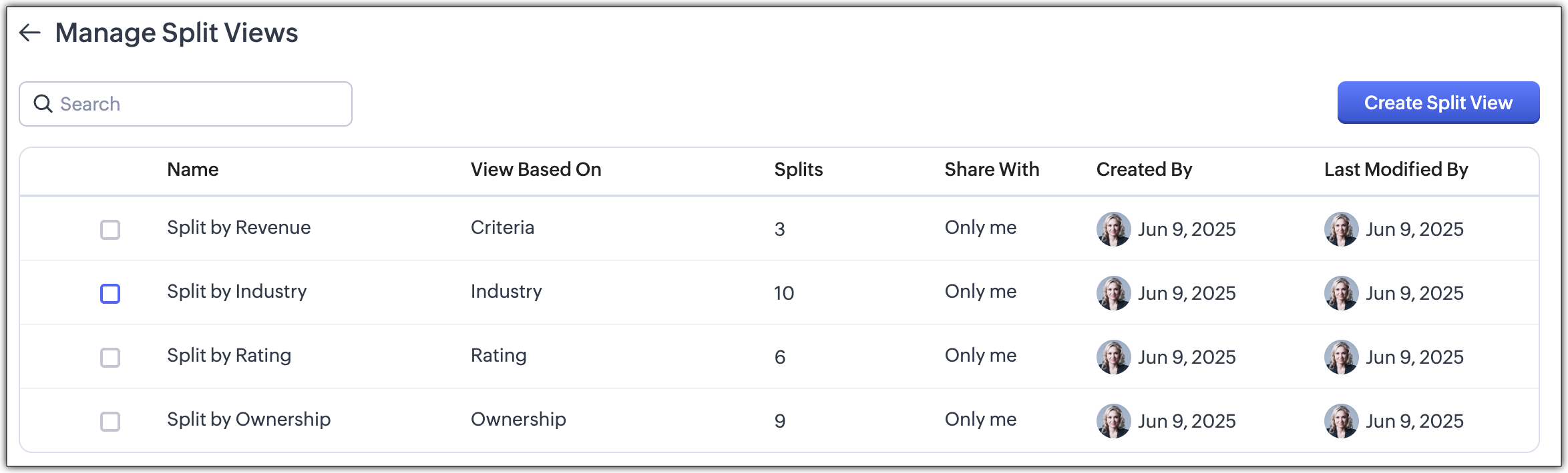 Split View este o vizualizare de modul în interfața NextGen UI a Zoho CRM care le oferă utilizatorilor puterea de a împărți seturi mari de înregistrări în tabele mai mici, categorizate, pe baza unui câmp specific, cum ar fi o listă de selecție, un utilizator sau orice criteriu definit. Acest aspect permite utilizatorilor să interacționeze cu mai multe seturi de date unul lângă altul, oferind o interfață mai contextuală, mai ordonată și mai ușor de utilizat.