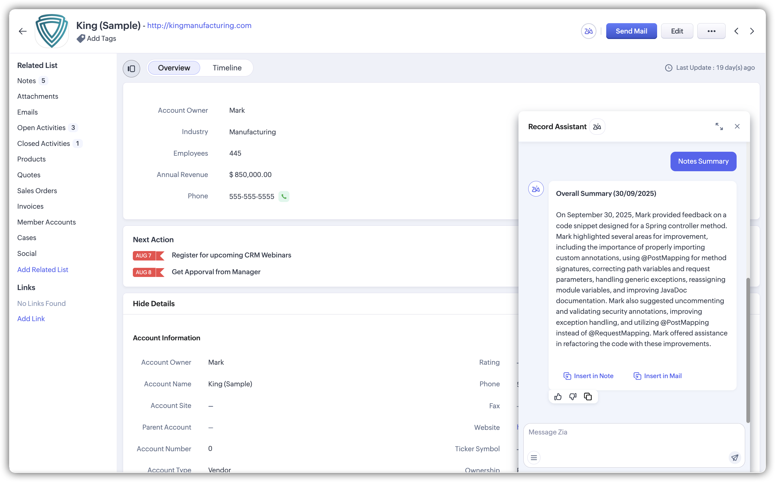 Notițele sunt locul unde utilizatorii captează informații din mers - inputuri de la clienți, discuții interne sau remindere de follow-up. Dar revizuirea lor, mai ales când sunt zeci legate de o înregistrare, poate dura mult. Note Summary condensează aceste informații dispersate într-o prezentare generală ușor de citit.