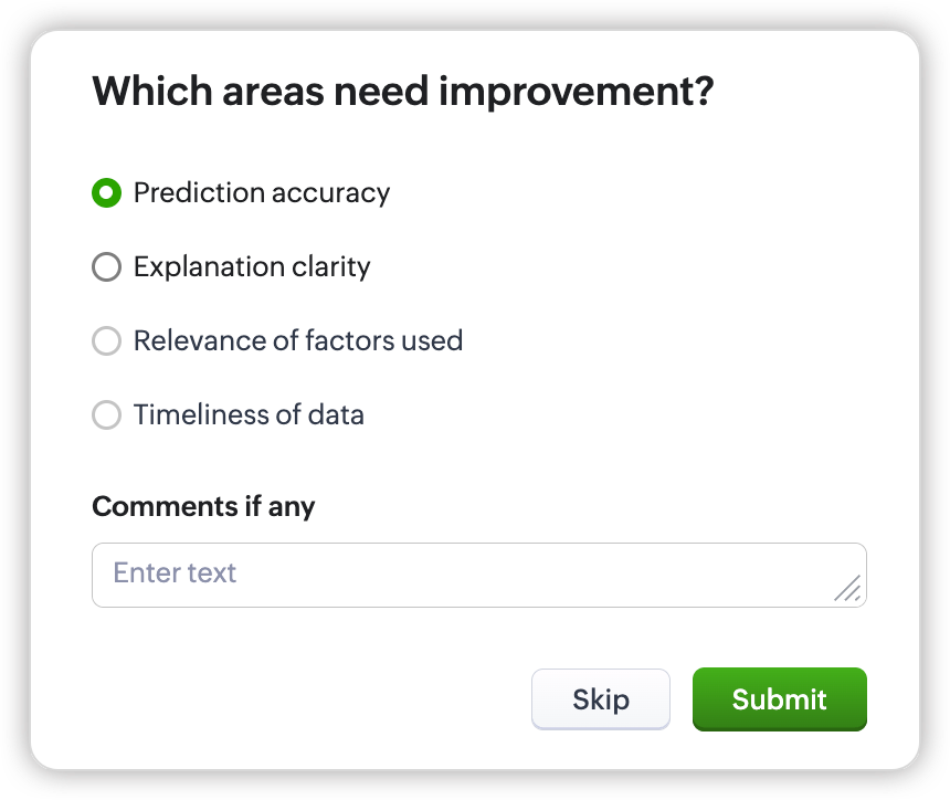 Personalizează probabilitatea de a câștiga o tranzacție, de a reține un client sau de a atinge un obiectiv de afaceri dorit. Aici, Zia ar putea lua în considerare date istorice, analize predictive și factori contextuali.