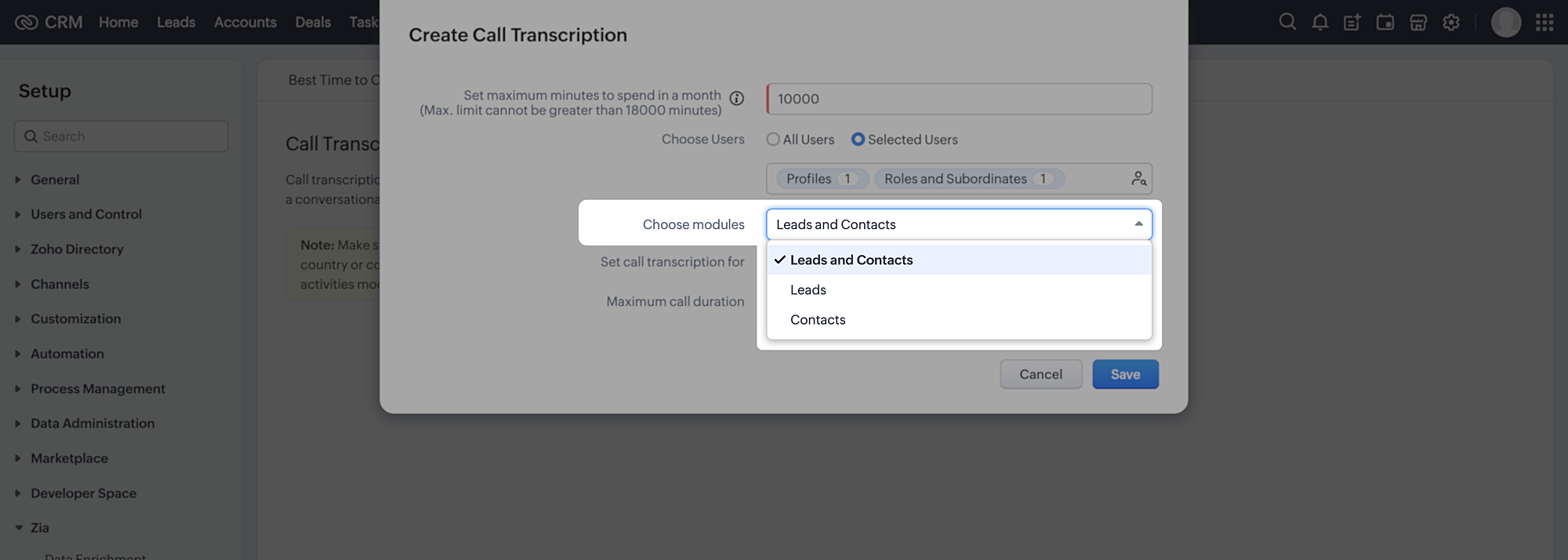 - Această funcție este disponibilă doar pentru utilizatorii cu abonament plătit în Zoho CRM.