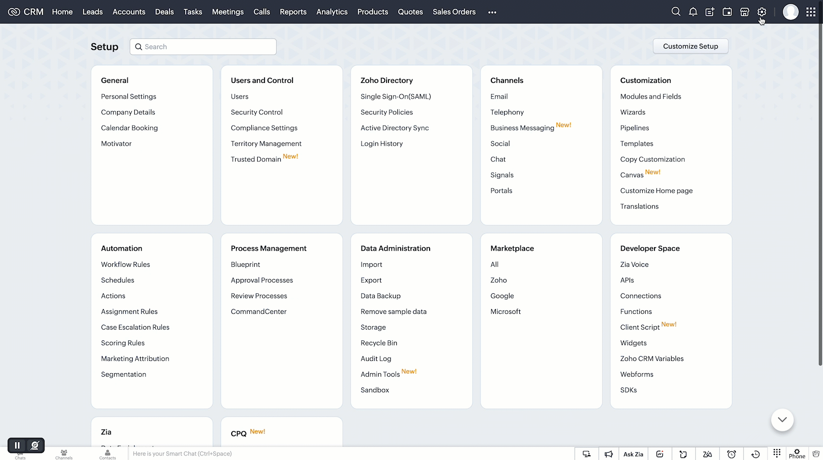 - În contul tău CRM, accesează Setup (