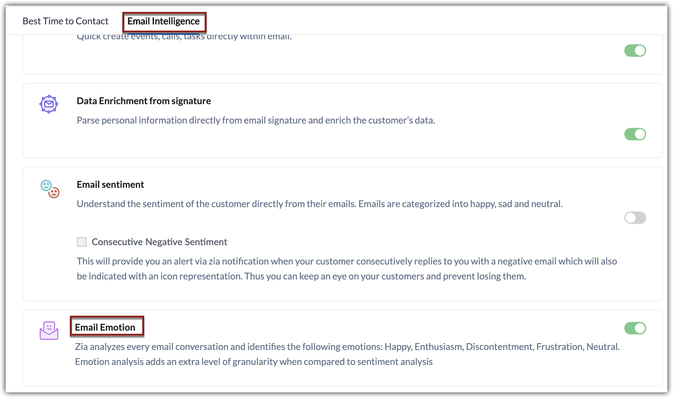 Pentru a activa emoțiile din emailuri în Zoho CRM