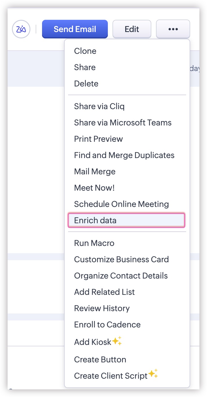 - În pagina de detalii a înregistrării, fă clic pe pictograma cu puncte de suspensie și selectează Enrich data.