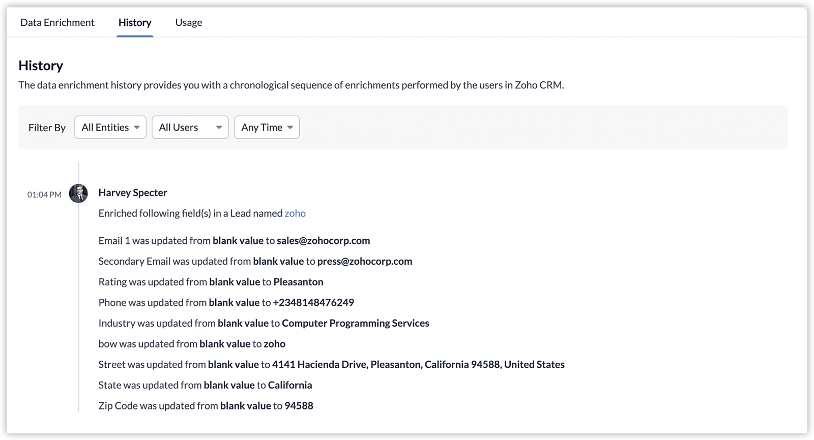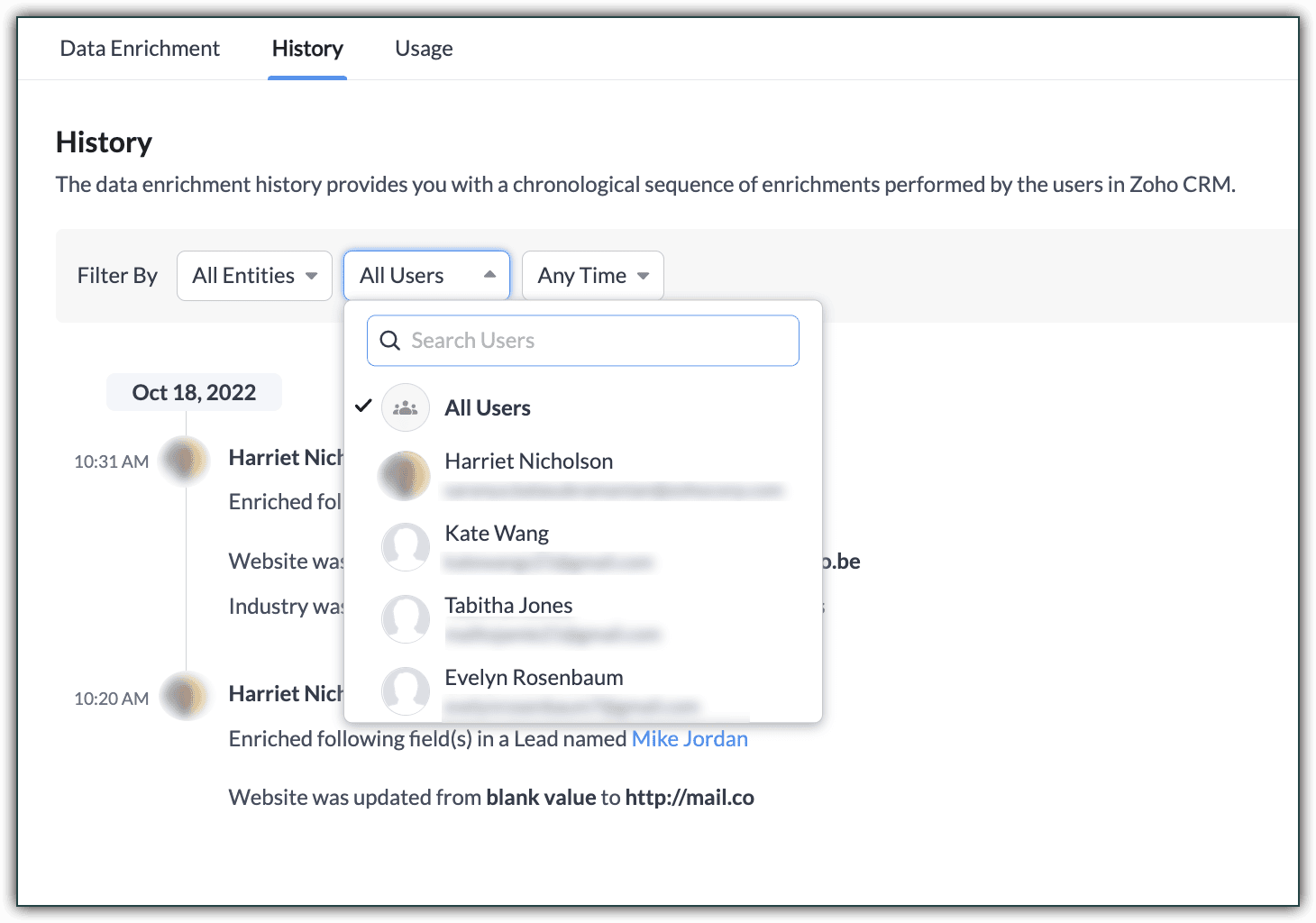 - Monitoriza îndeaproape dacă și cum utilizatorii tăi CRM folosesc îmbogățirea datelor.
