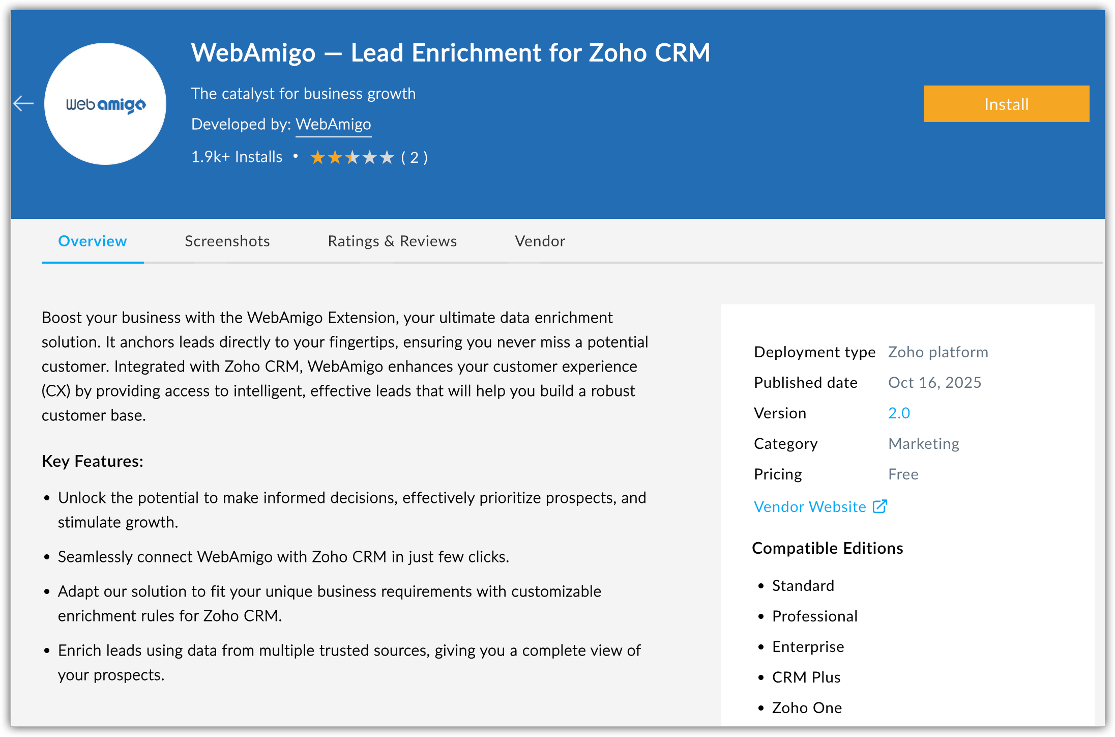 - Instalează extensia WebAmigo din marketplace.