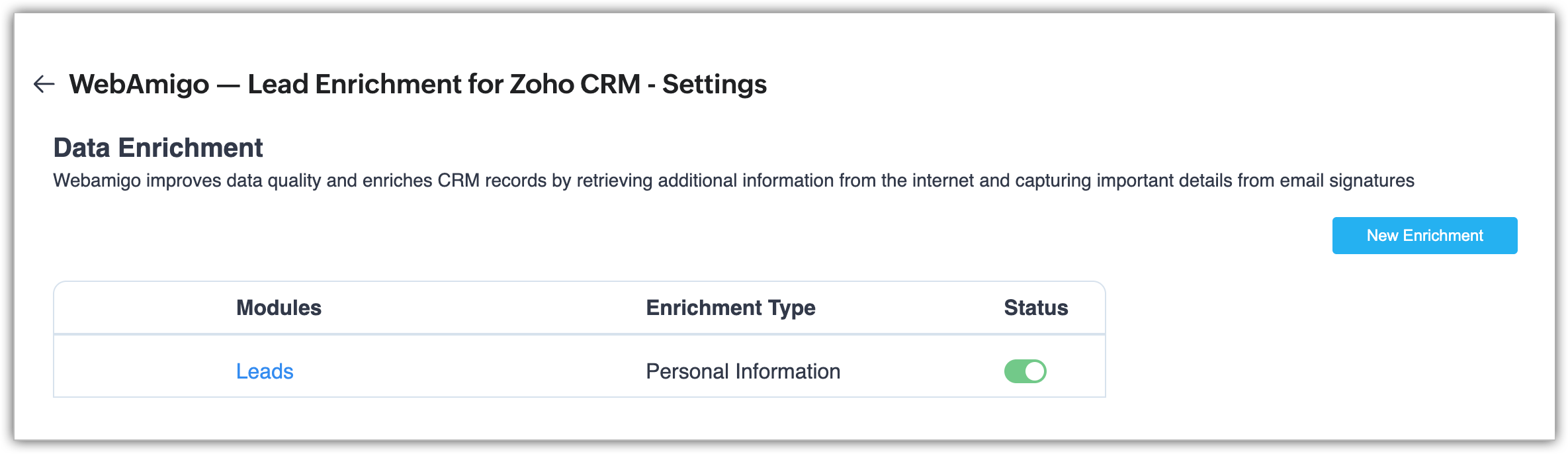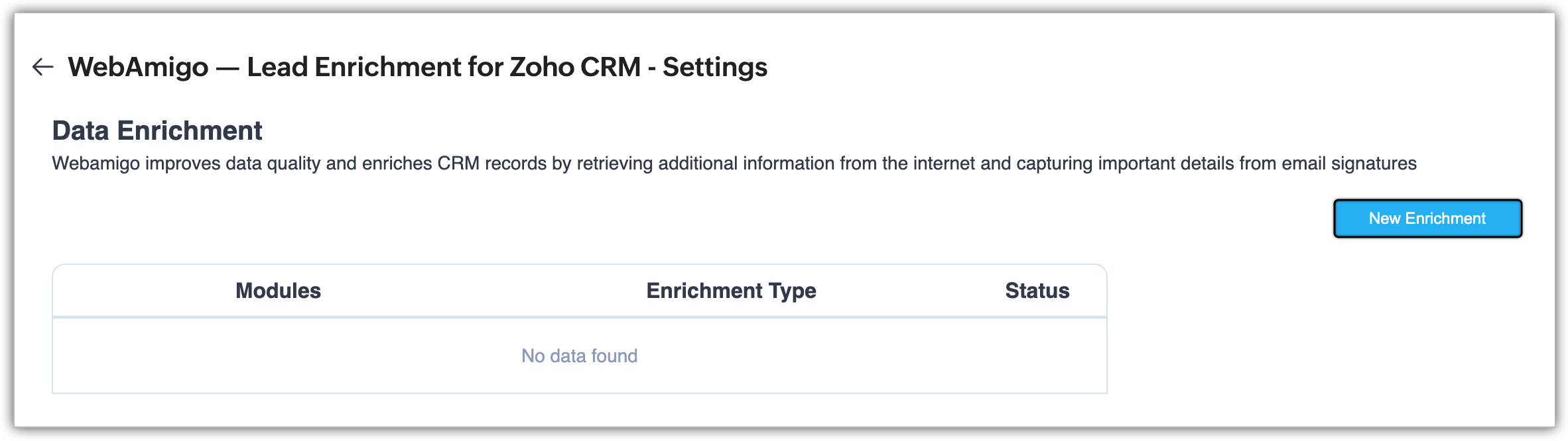 - Creează o nouă îmbogățire apăsând pe New Enrichment.