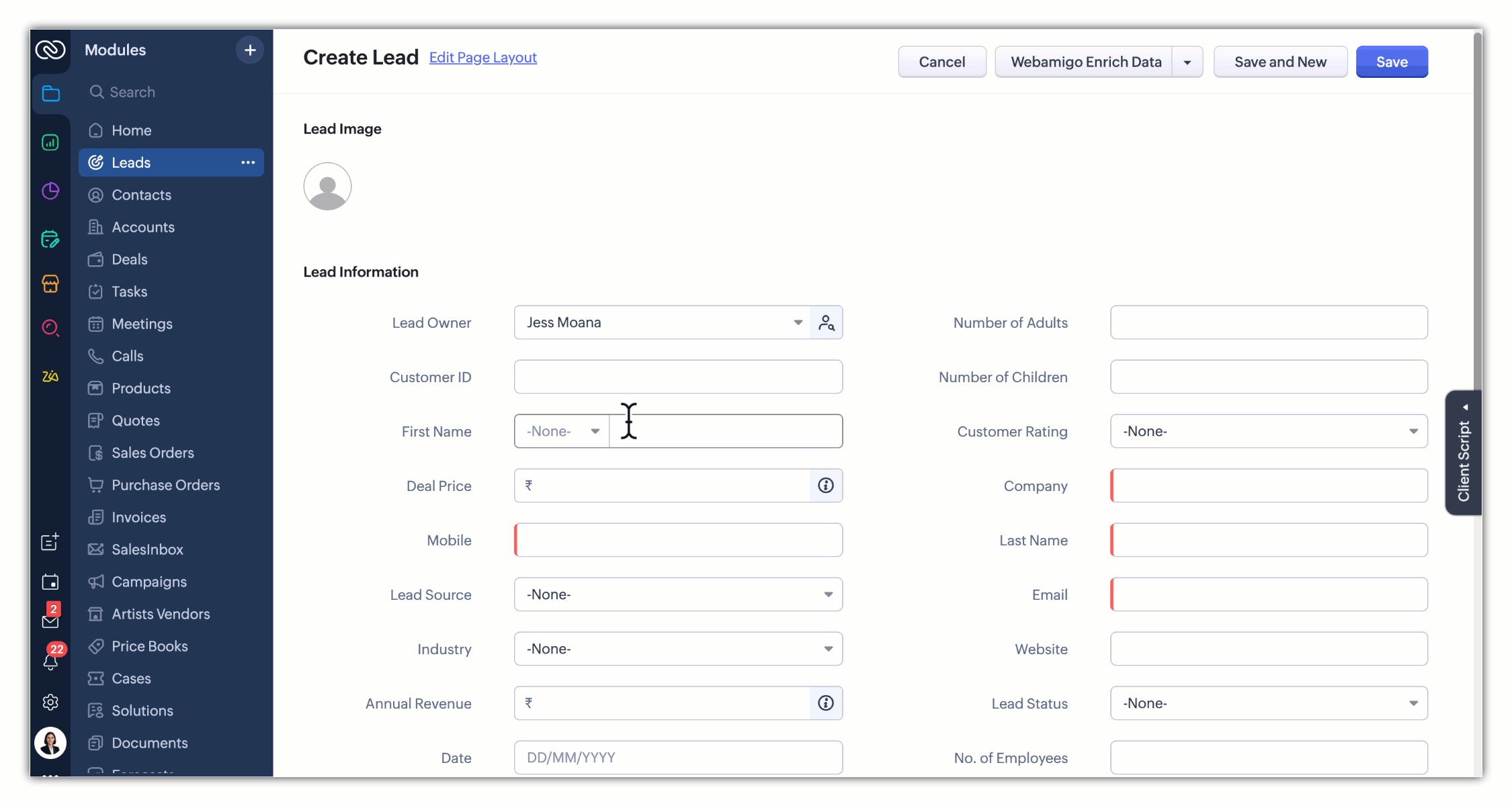 Capturile de ecran din acest articol sunt in limba engleza. Interfata Zoho CRM poate varia in functie de versiune si limba setata.