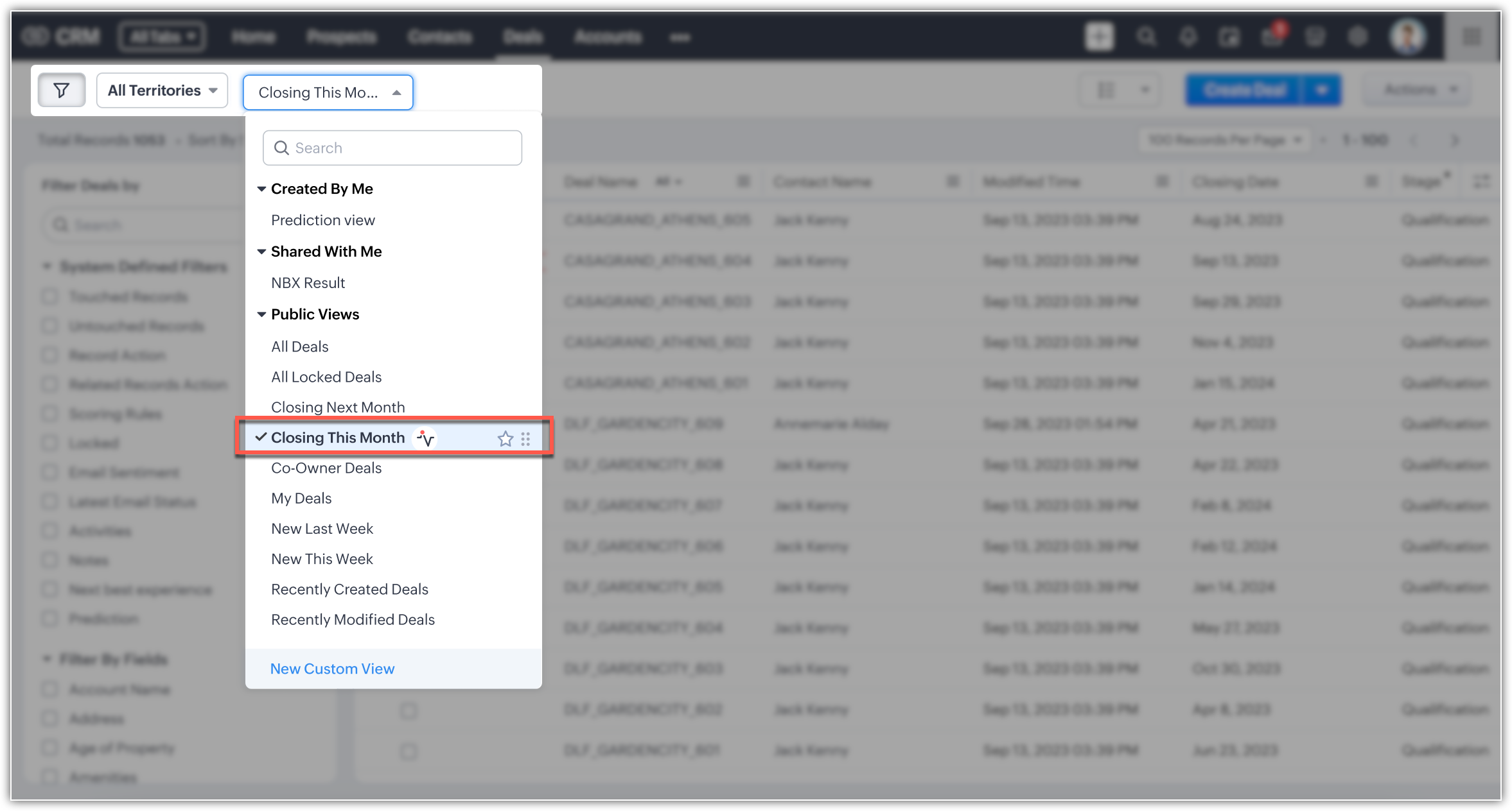 Poți configura detectarea anomaliilor pentru vizualizări personalizate specifice în CRM-ul tău. Această funcționalitate te alertează în timp real despre activități sau comportamente neobișnuite în datele tale referitoare la clienți. Îți îmbunătățește capacitatea de a monitoriza îndeaproape punctele cheie de date, ajutând la identificarea și gestionarea la timp a tendințelor potențiale și problemelor în angajamentul clienților și activitățile de vânzări. În esență, acest instrument este conceput să te ajute să detectezi prompt și să fii notificat despre orice activități neregulate în comportamentul prospectelor sau tranzacțiilor.