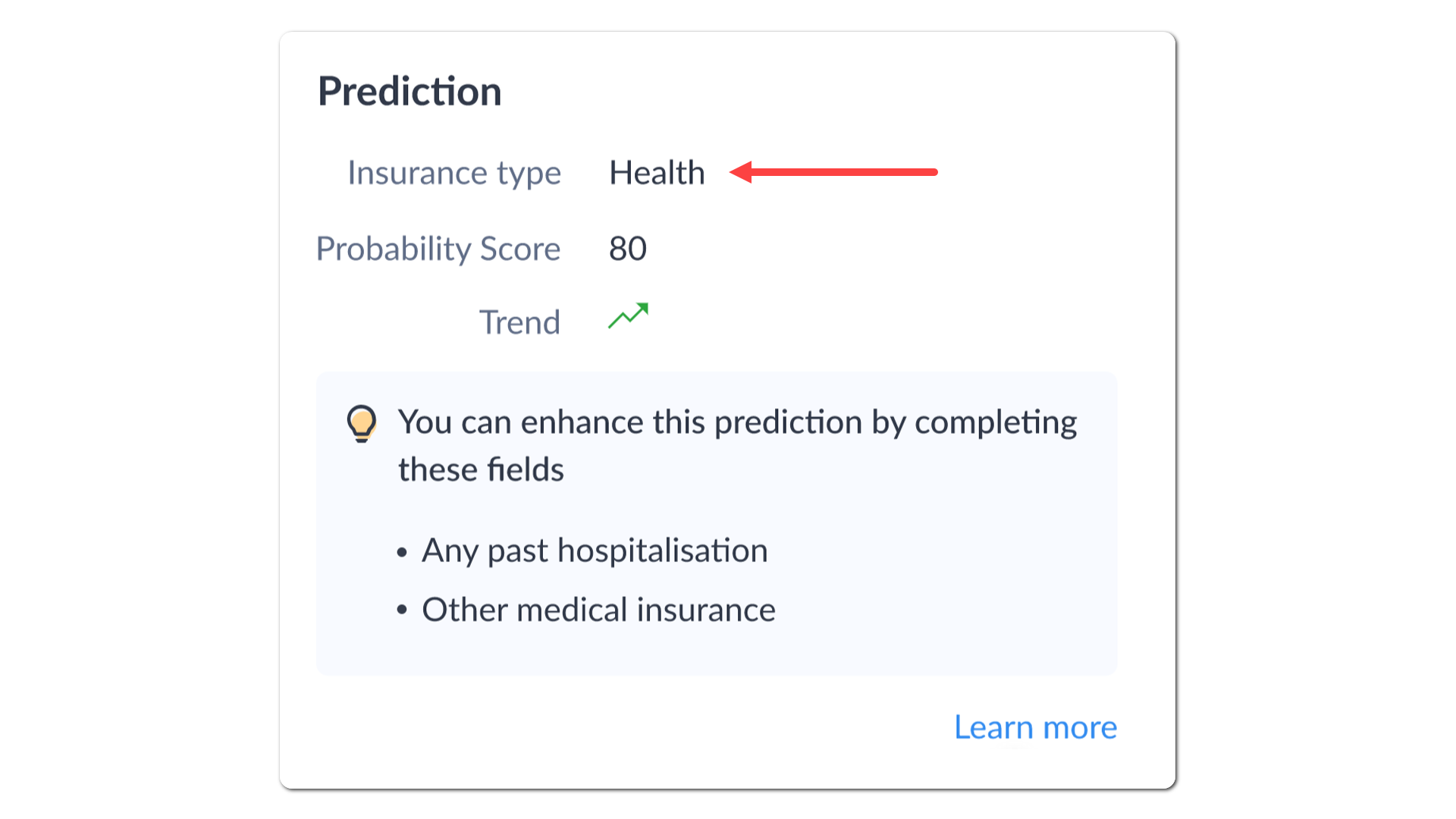Poți selecta mai multe valori picklist într-o valoare sursă, de exemplu, "health" și "personal accident". În acest caz, Zia va crea o predicție pentru valorile selectate.