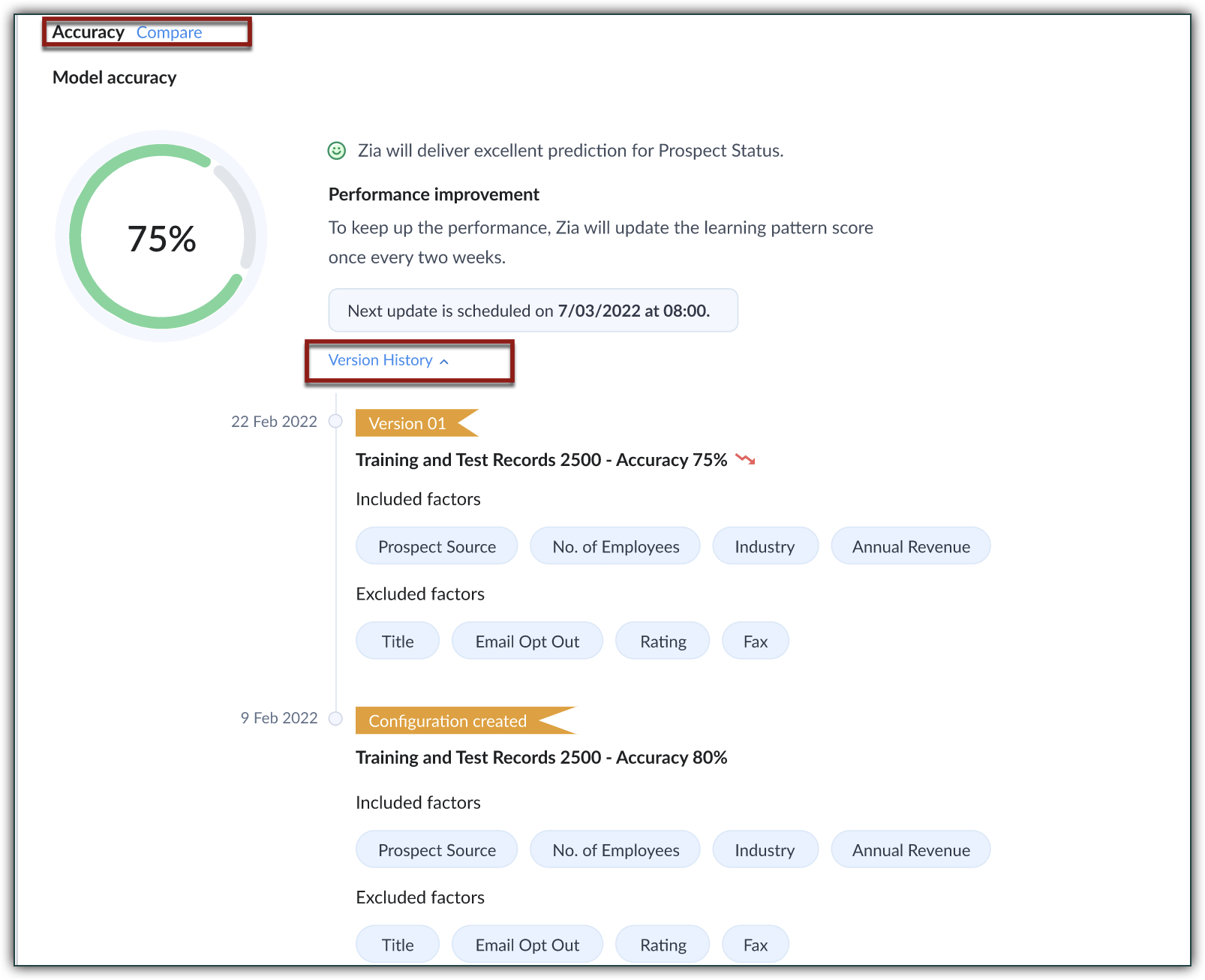 Algoritmul de predicție va funcționa doar dacă ai cel puțin 200 de înregistrări care corespund criteriilor pe care le-ai folosit pentru a antrena Zia.
