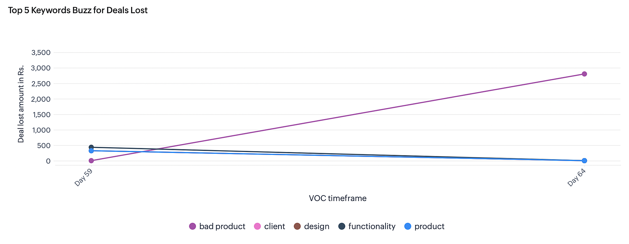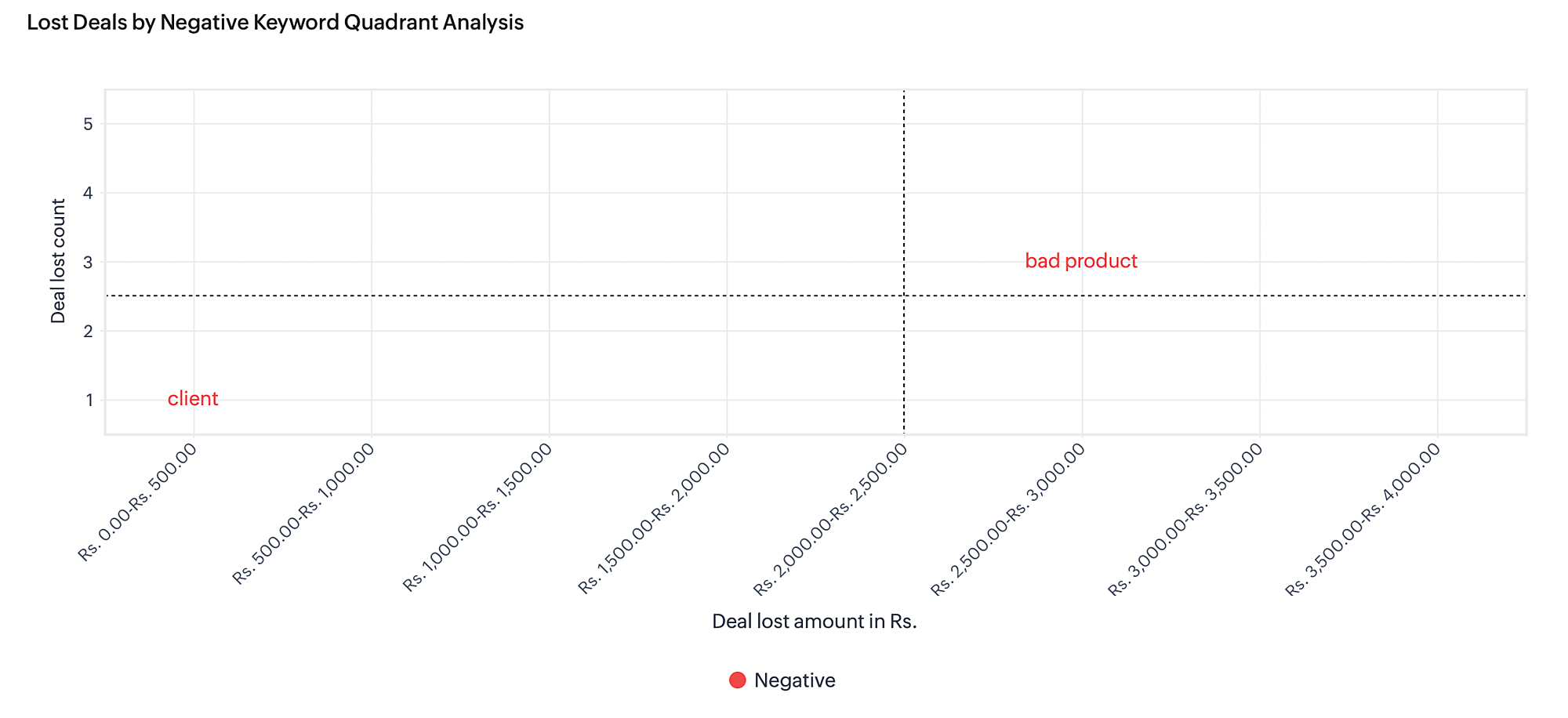 Cele mai recente cuvinte cheie menționate înainte de tranzacțiile pierdute sunt reprezentate în raport cu cadranele. Aceasta îl ajută pe utilizator să evite folosirea acelor cuvinte cheie pentru tranzacțiile viitoare și să prioritizeze problemele pentru a evita mai multe pierderi de tranzacții. Aceasta ajută la atingerea țintei stabilite pentru o perioadă prin analizarea diferenței și evitarea cuvintelor cheie care duc la pierderea tranzacțiilor.