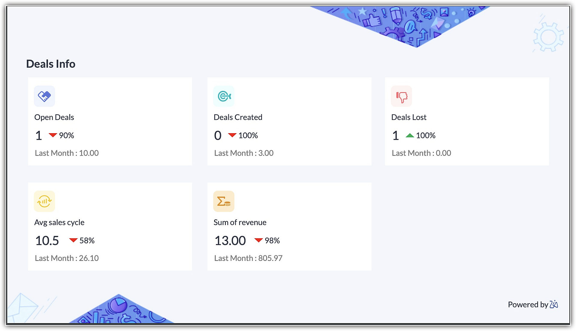 Această secțiune va afișa următorii KPI-uri pentru modulul Deals: