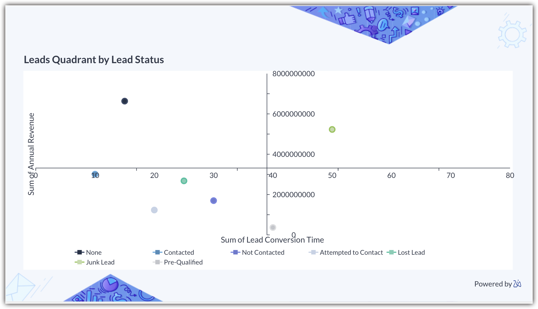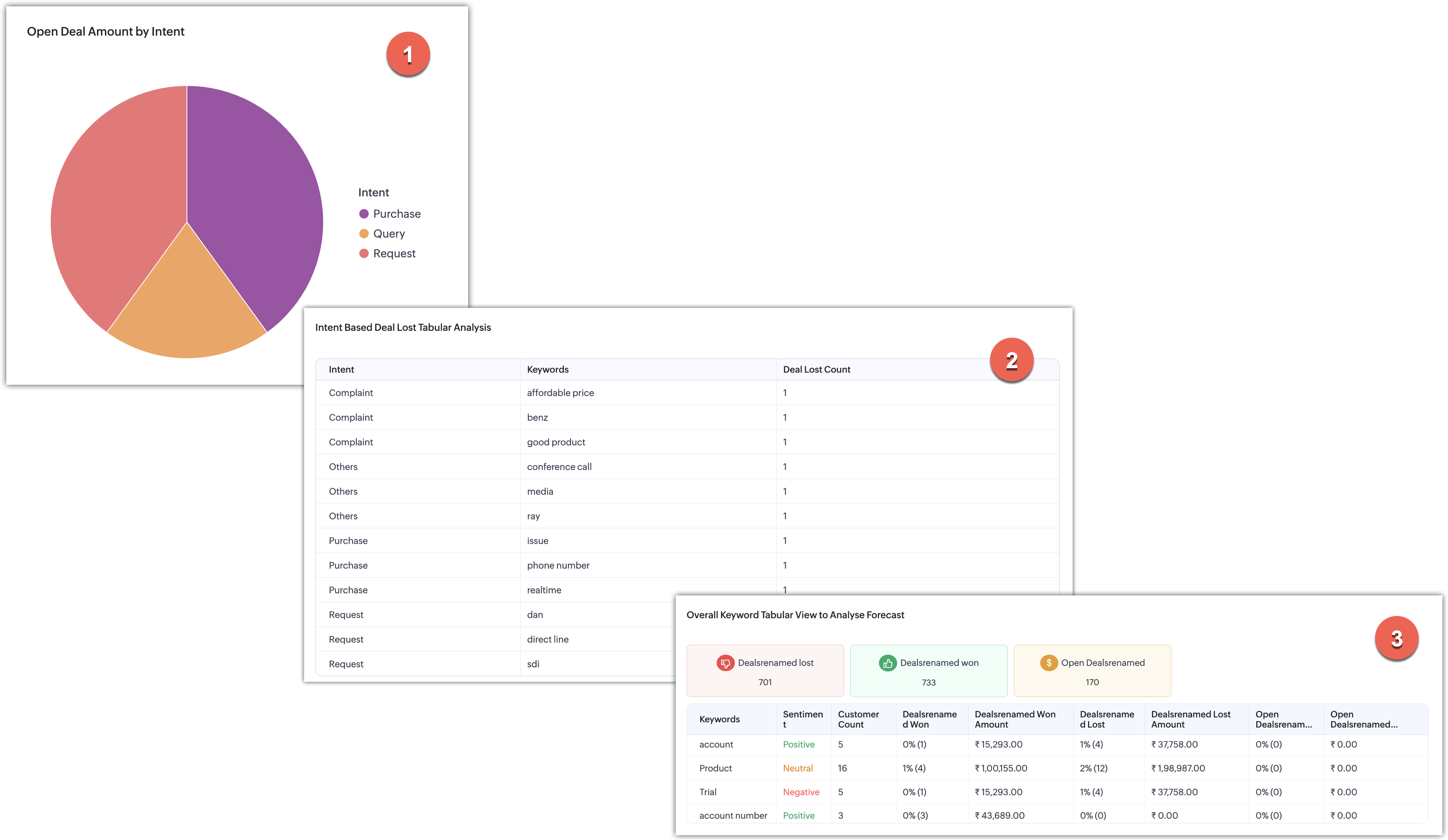 Totuși, pentru a realiza astfel de analize personalizate, de multe ori ar trebui să cauți prin baza de date densă a CRM-ului, să rulezi mai multe rapoarte și dashboard-uri și să le compilezi ca prezentări informative. Aceasta înseamnă multă muncă manuală pe lângă sarcinile zilnice deja aglomerate ale afacerii tale.