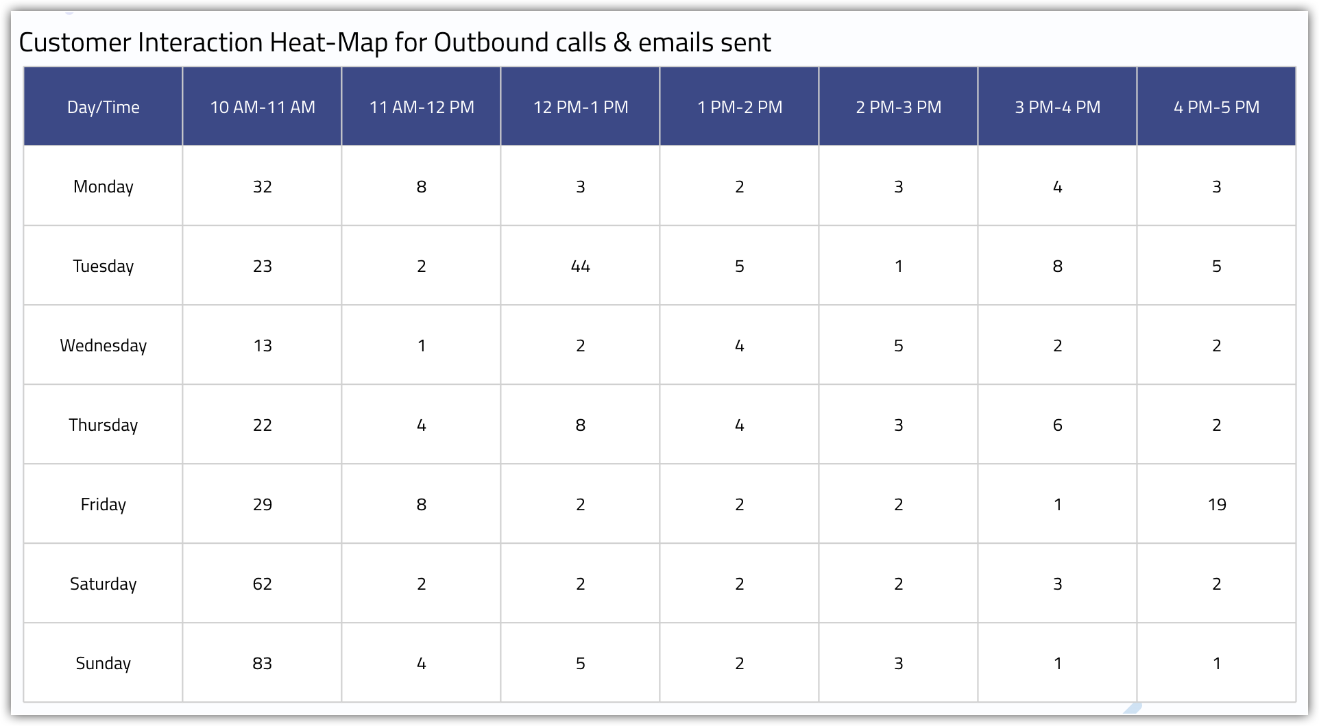 Zia prezintă grafice semnificative pentru Best Time Analytics, cum ar fi momentele optime de contact și tendințele interacțiunilor cu clienții. Aceste grafice sunt generate fie din datele unui utilizator specific, fie din datele întregii organizații, dacă Zia este configurat să ia decizia. Când un manager adaugă membri în echipă, Best Time Analytics va include automat datele acestor membri fără a fi necesară o configurare suplimentară.