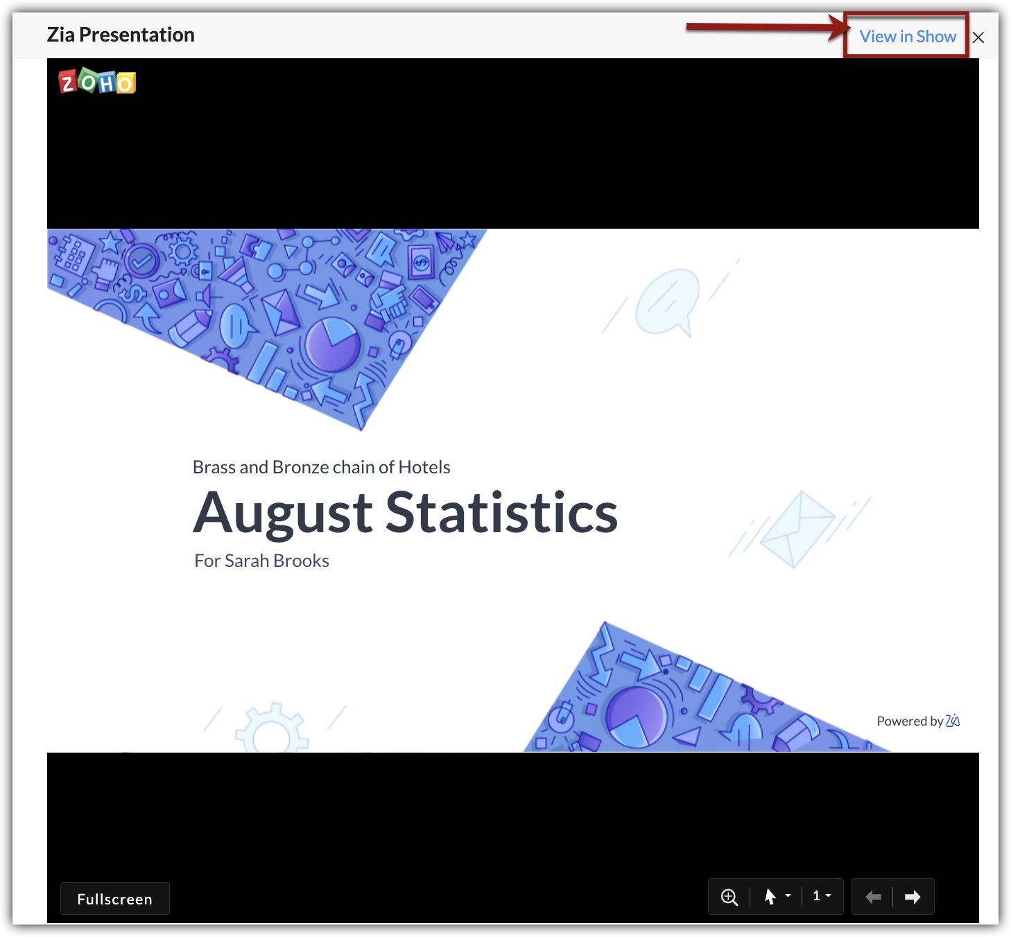 - Apasă View in Show pentru a exporta slide-urile în Zoho Show pentru personalizare ulterioară.