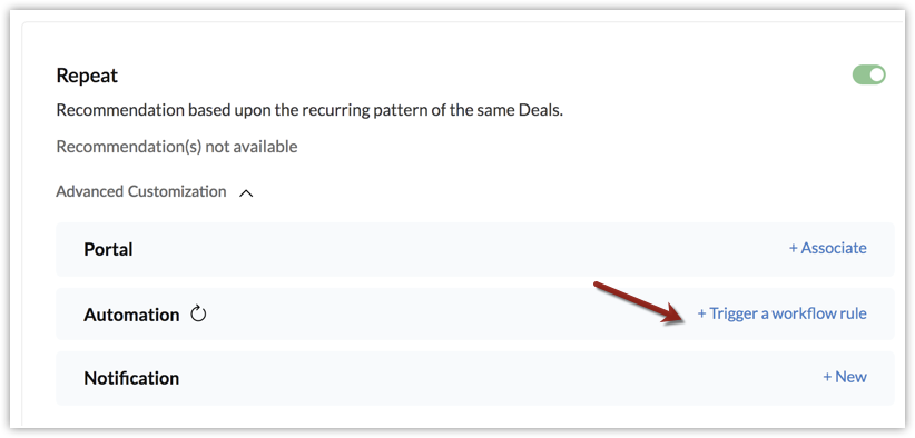- Expandează Advanced Customization , sub Automation apasă pe + Trigger a workflow rule .