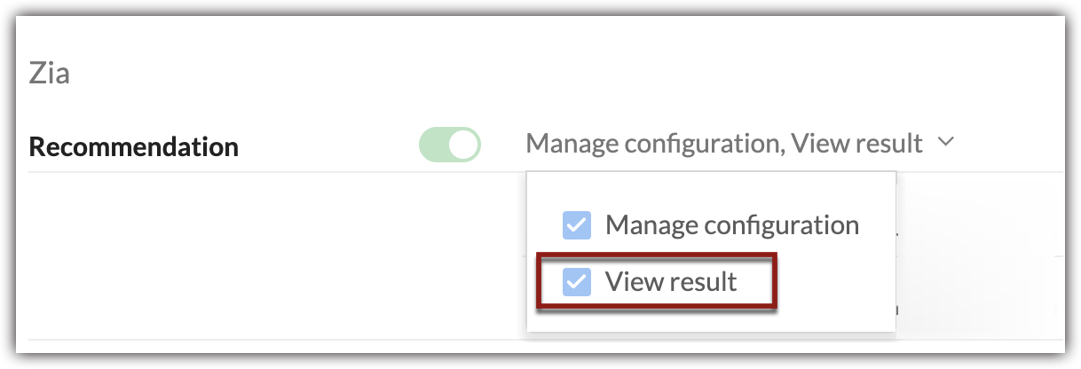 - Mergi la Setup > Zia > Recommendation .