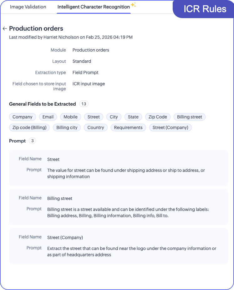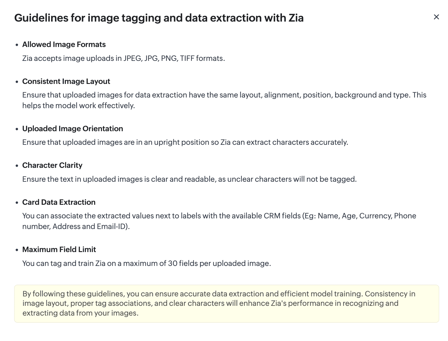 În Zoho CRM, ICR este construit ca parte din Zia Vision - instrumentul de detectare și validare a imaginilor bazat pe AI.