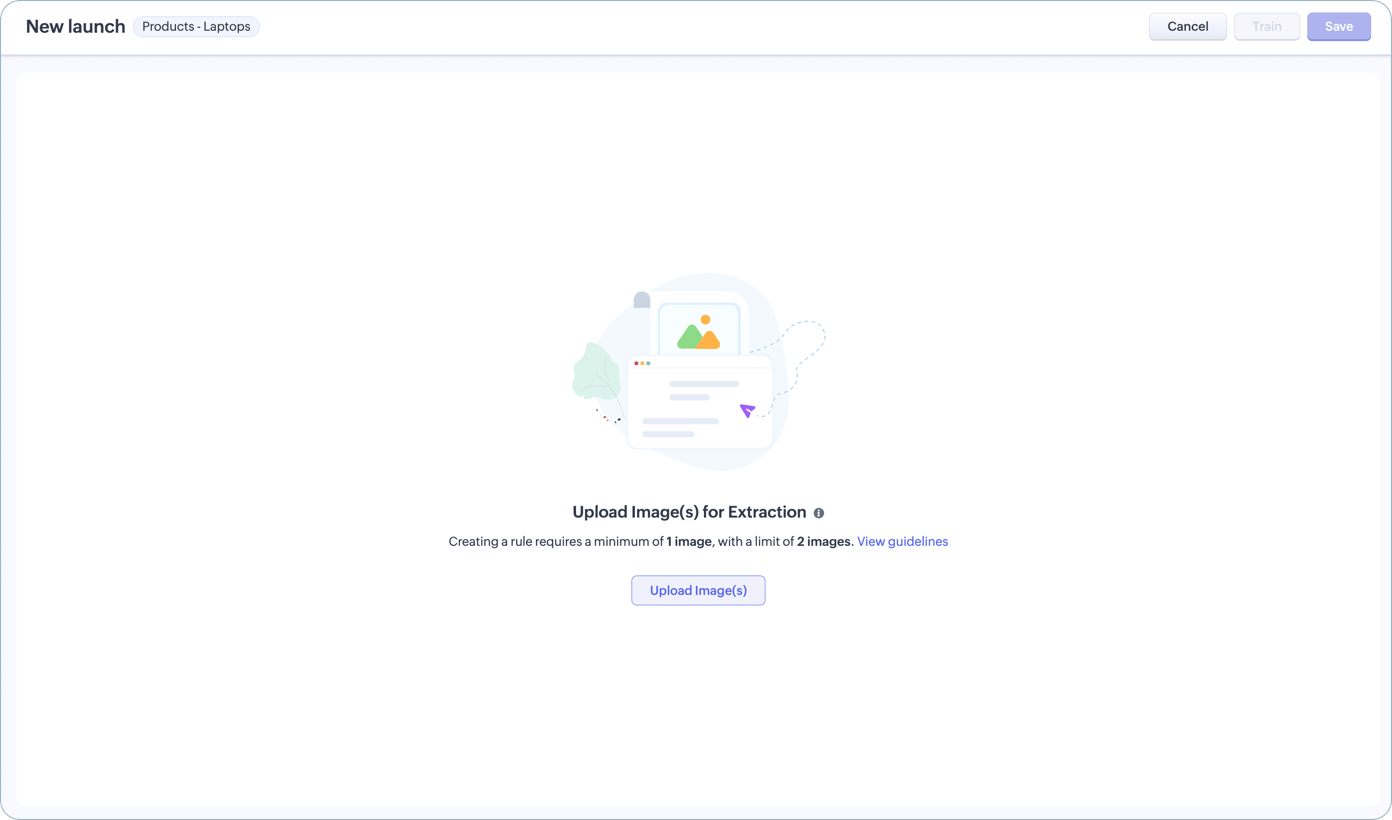 - Apasă Next. Aceasta te va duce la interfața de antrenare numită Upload Image(s).