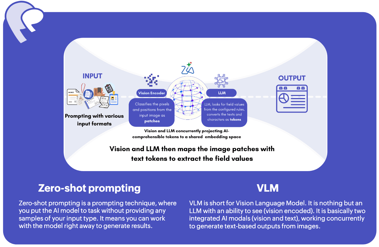 Solicitarea zero-shot pe bază de câmpuri este o metodă avansată de extracție a datelor care nu necesită niciun antrenament. Îi spui lui Zia ce câmpuri să caute în imaginea de intrare (solicitare pe bază de câmpuri) și Zia, prin virtutea inteligenței sale, va putea identifica și extrage acele date fără a necesita intervenție umană.