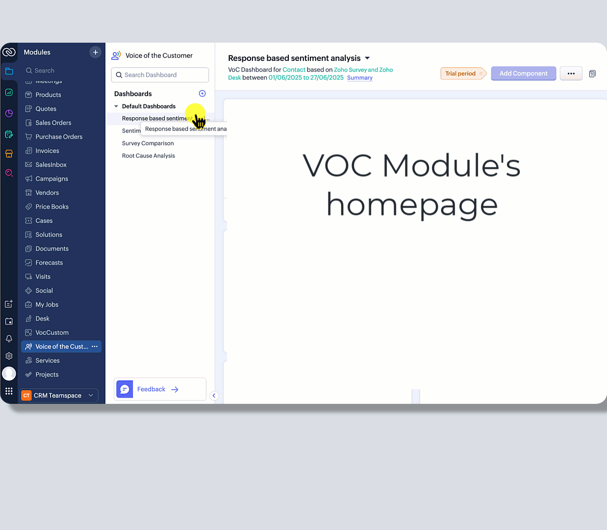 - Accesează modulul Voice of the Customer din lista de module disponibile în organizația ta.