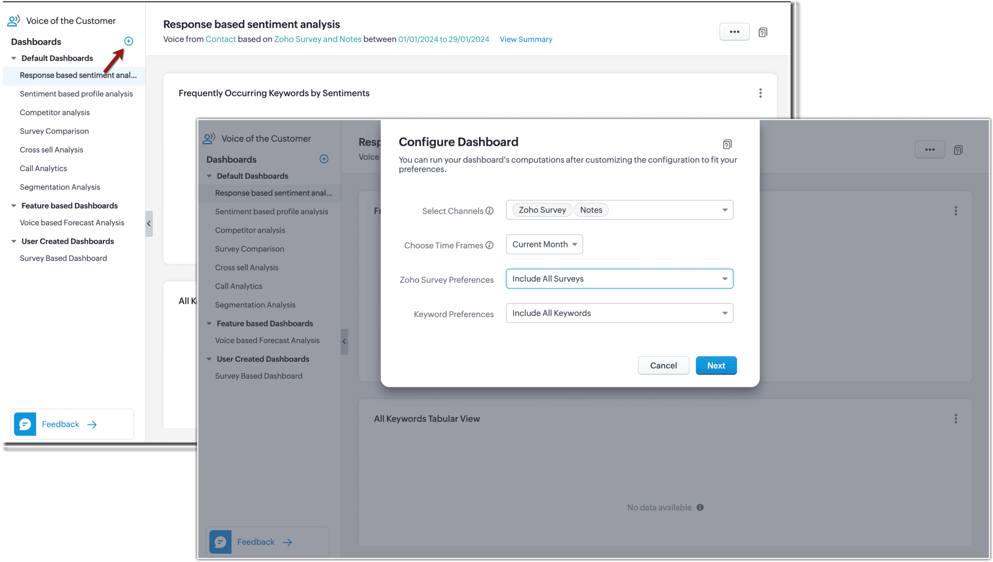 Mergi la modulul Voice of Customer.