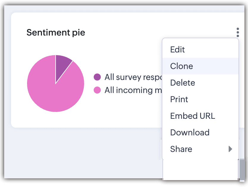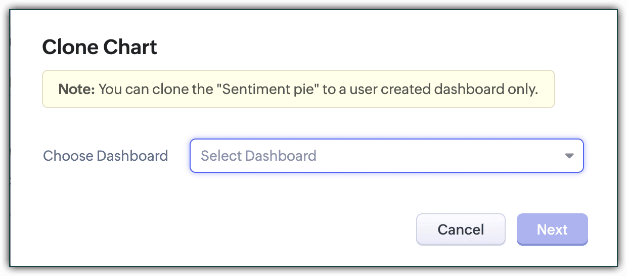 Clone clonează dashboard-ul în context. Destinația graficului clonat poate fi doar un dashboard creat de utilizator.