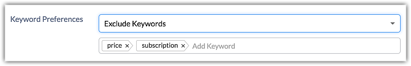 - Setează preferința cuvintelor cheie: Include all keywords sau Exclude keywords.