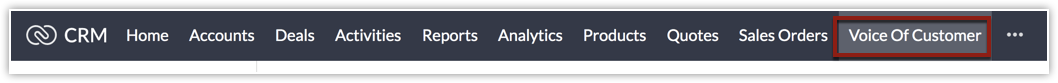 Odată ce funcționalitatea este activată , modulul Voice of Customer va fi adăugat în contul tău CRM. Acest modul va afișa dashboard-urile și componentele VOC.