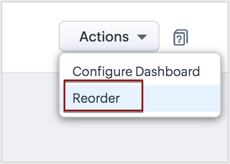 - Poți reordona componentele dashboard-ului apăsând Actions > Reorder.
